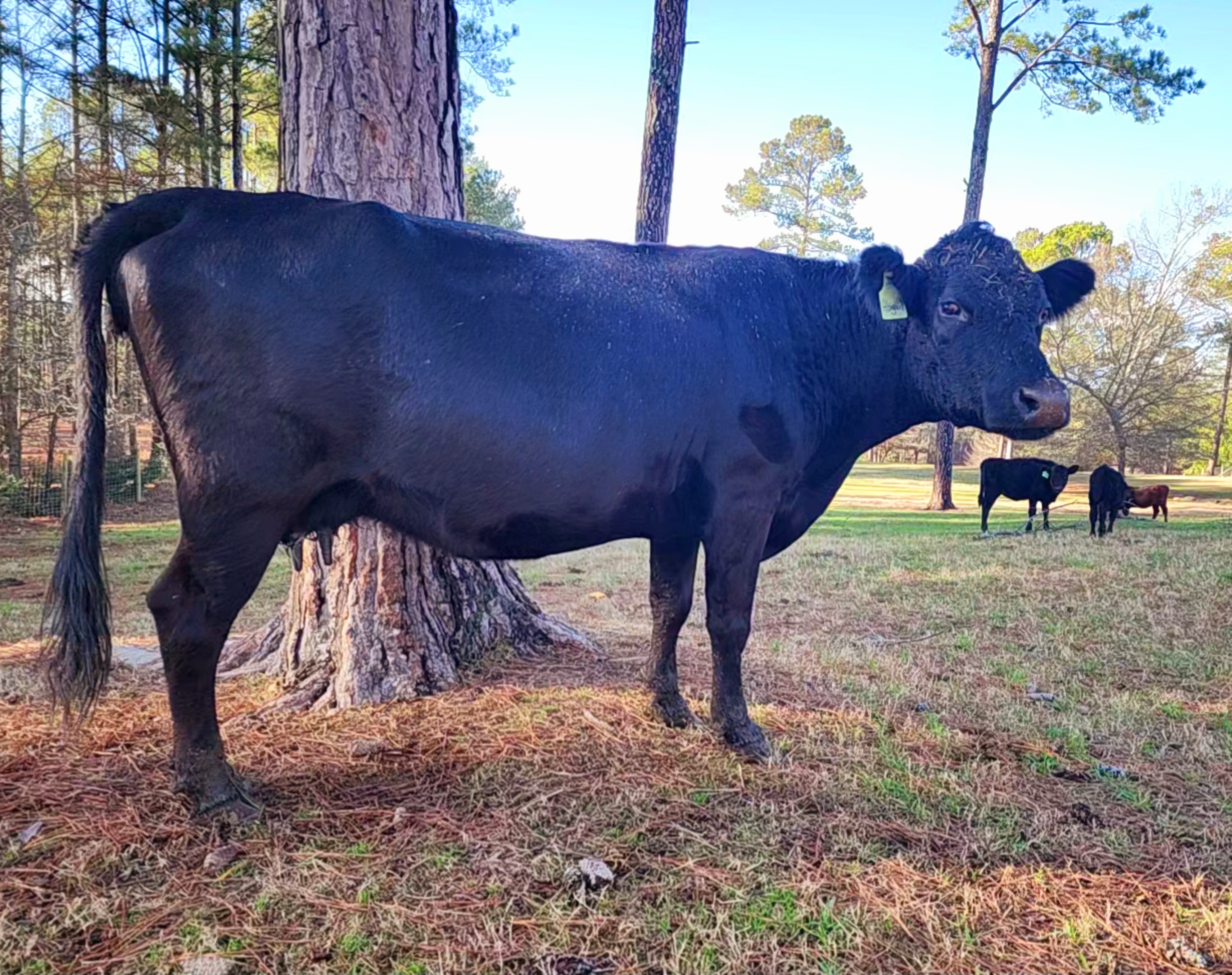 with her 2024 calf June Bug